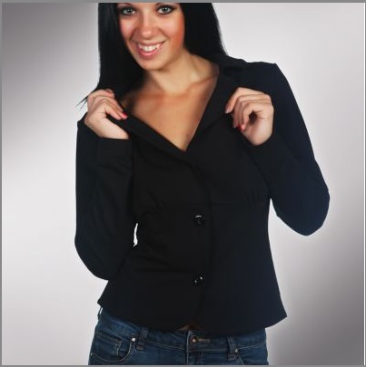 Стильный укороченный жакет <<Жаклин>>, отрезной под грудью со сборкой на кокетке, идеально сидит на фигуре. Воротник пиджачного типа и закругленный низ подборта - производные элементы классического жакета, необходимого в гардеробе каждой модницы.